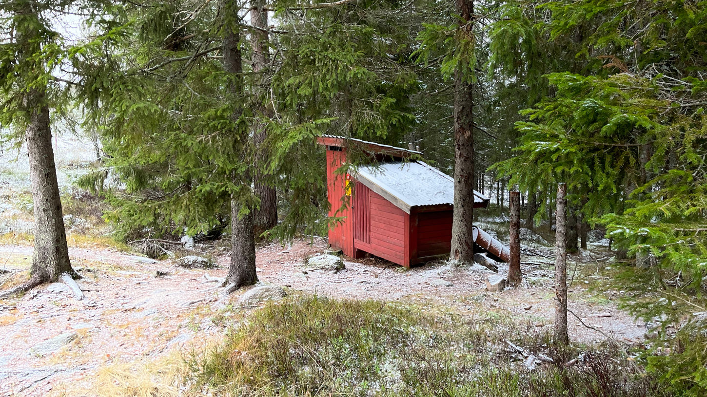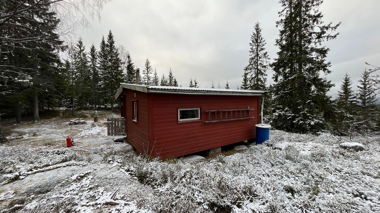 Lite hytte med 2 rom, som leies ut til Eidsoll Skog Jeger og Fiskerforening.